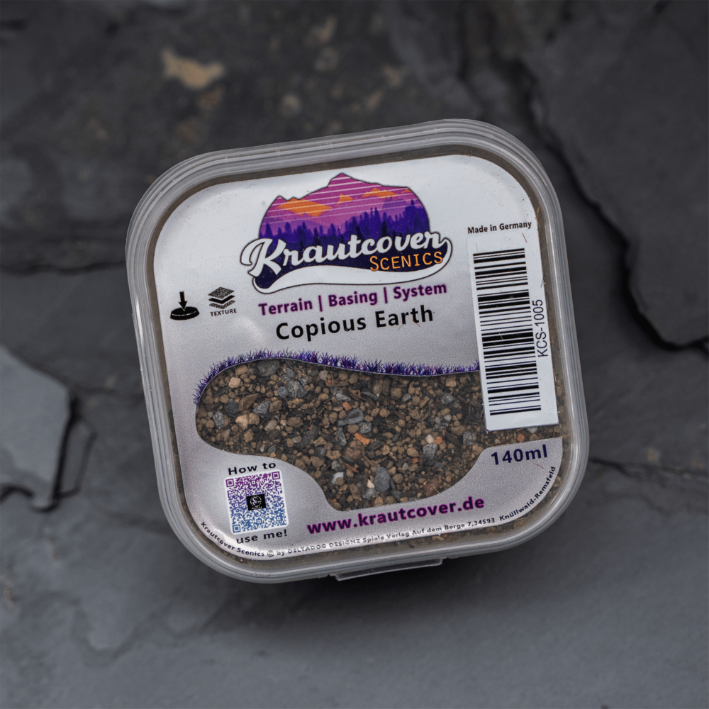 Copious Earth combines warm earth tones with finely tuned stones and a subtle green note Grass. Perfect for creating Bases from dirt roads to muddy battlefields. Also for terrain pieces, Copious Earth is your all-purpose weapon for all types of earthy soils. The mix also combines well with other Basecovers like Meadows of Purity or Kodama Woods to create even more interesting and natural landscapes and bases. Volume: 140ml
